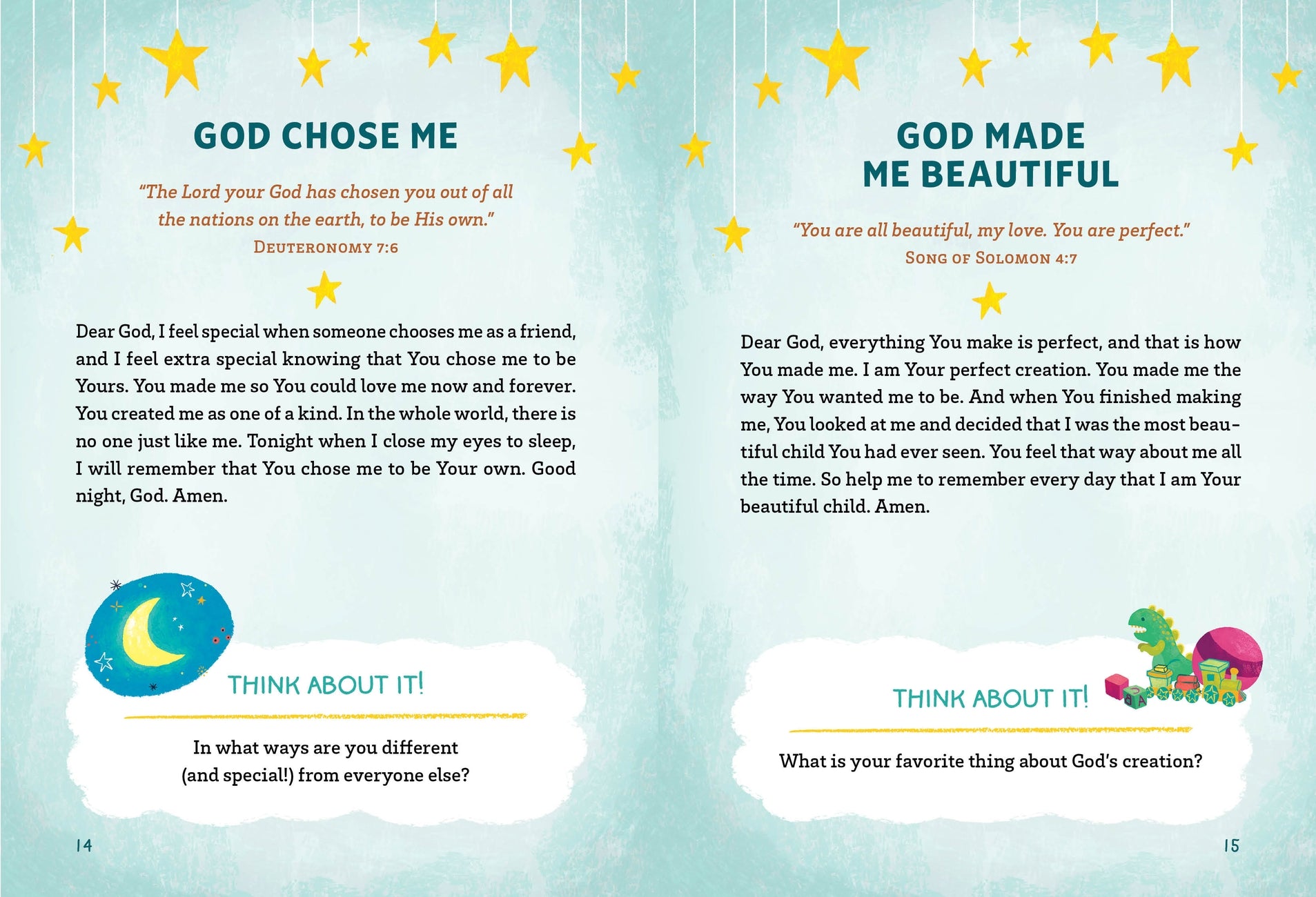 Pajama Prayers reminds kids that God is so, so good! This delightfully illustrated bedtime prayer book is a fantastic reminder for the kids in your life that God is good all the time. With each turn of the page, kids ages 5 to 8 will encounter just-right-sized scripture selections and prayers alongside "Think About It" questions that encourage them to apply their faith to everyday life. Inspiring and sweet, Pajama Prayers encourages parents and kids to spend quality faith-building time together. More than 50 simple, heartfelt prayers touch on dozens of kid-friendly topics including God's Big Love, Trusting God, Getting Along with Others, God's Protection, God's Good Plan, Heaven, and more. This endearing package makes a great addition to your child's home library and is sure to become a favorite bedtime book.